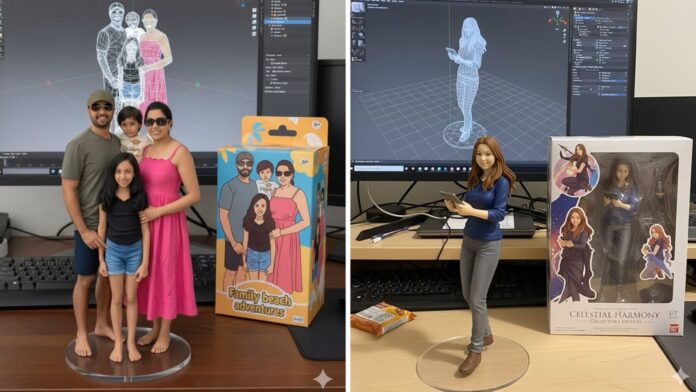 No requiere conocimientos técnicos ni pagos. Los usuarios pueden generar figuras en miniatura colocadas en entornos realistas, con bases de acrílico transparente y maquetas de empaque detalladas, similares a las figuras coleccionables comerciales.